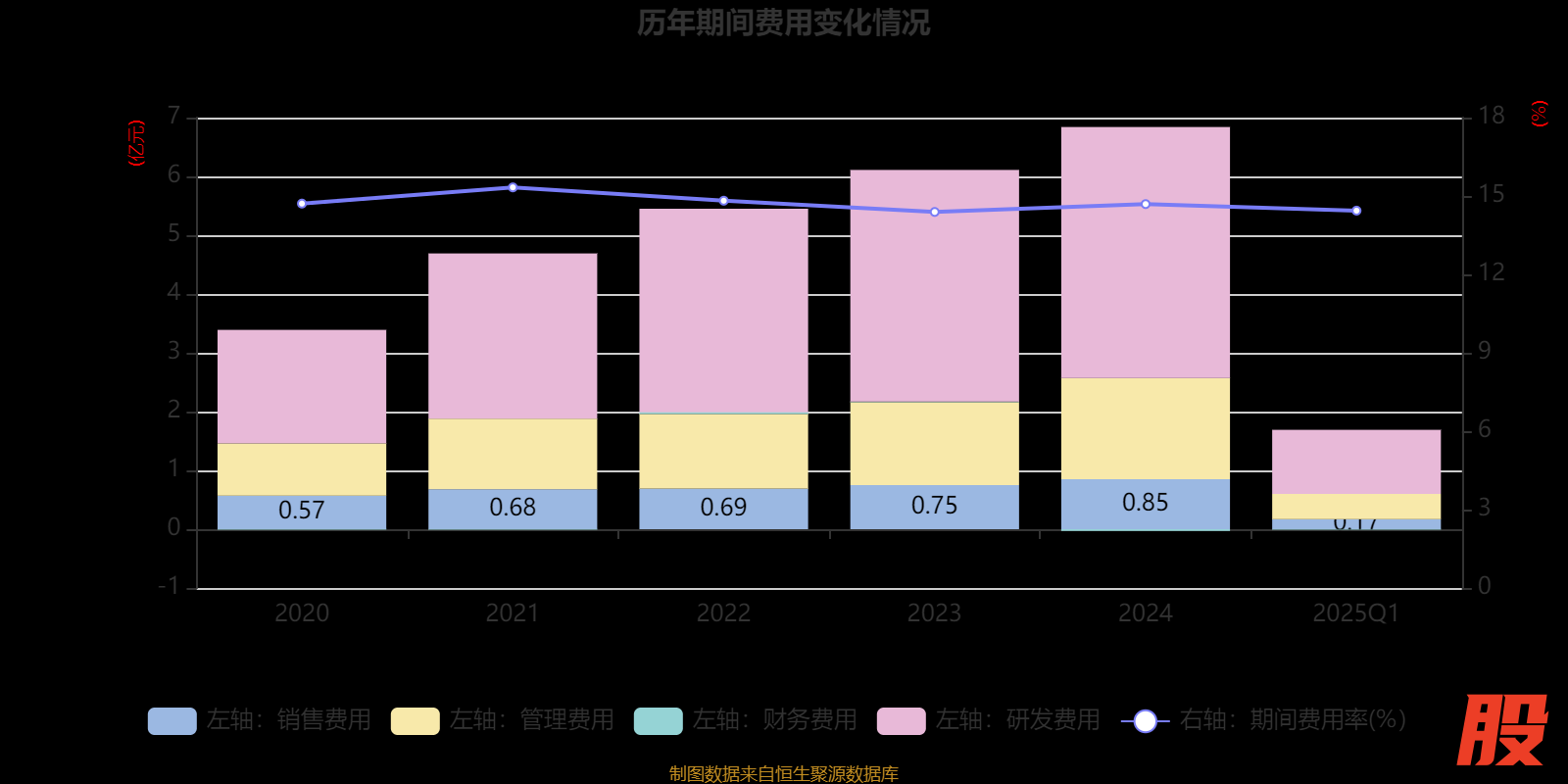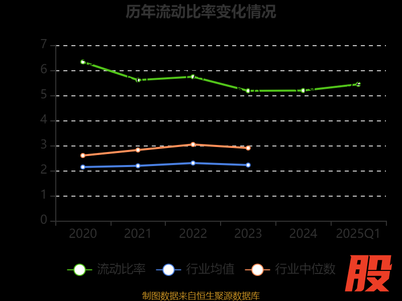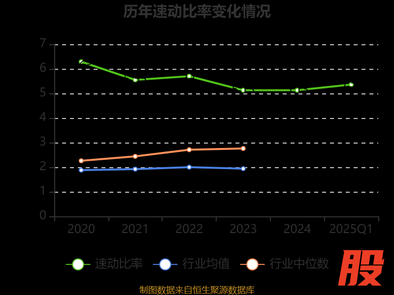 2025年第一季度,公司流动比率为5.44,速动比率为5.36。