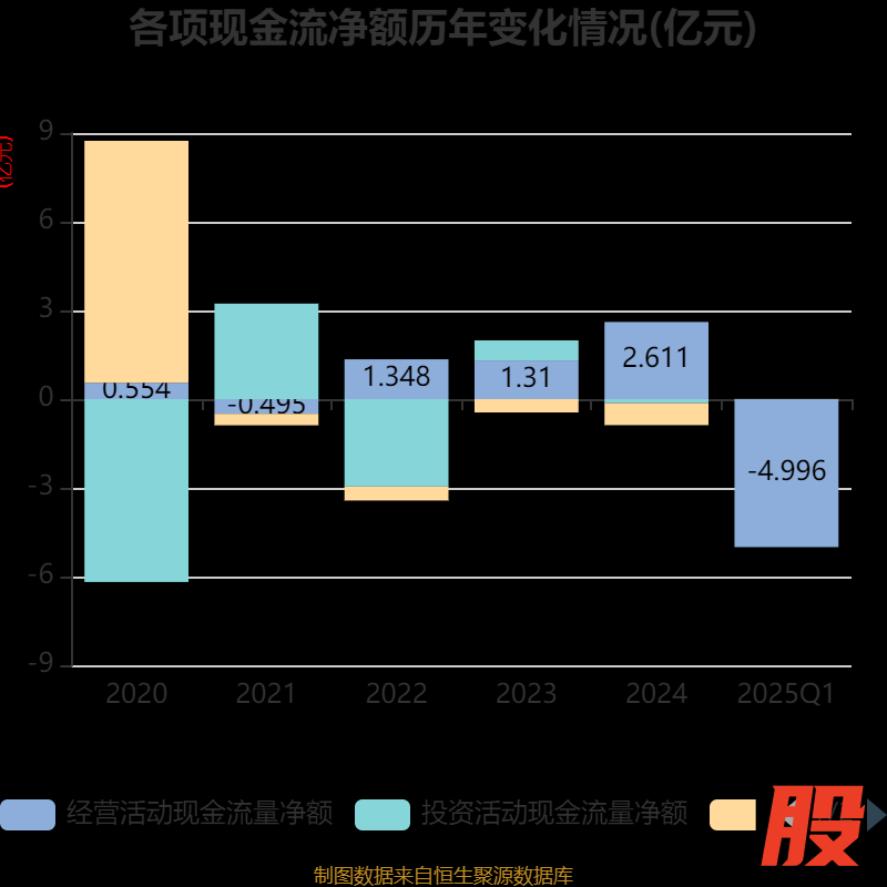 截至2025年一季度末聚创配资,公司经营活动现金流净额为-5亿元,同比减少688.53万元;筹资活动现金流净额67.68万元,同比增加532.58万元;投资活动现金流净额-95.66万元,上年同期为8539.89万元。